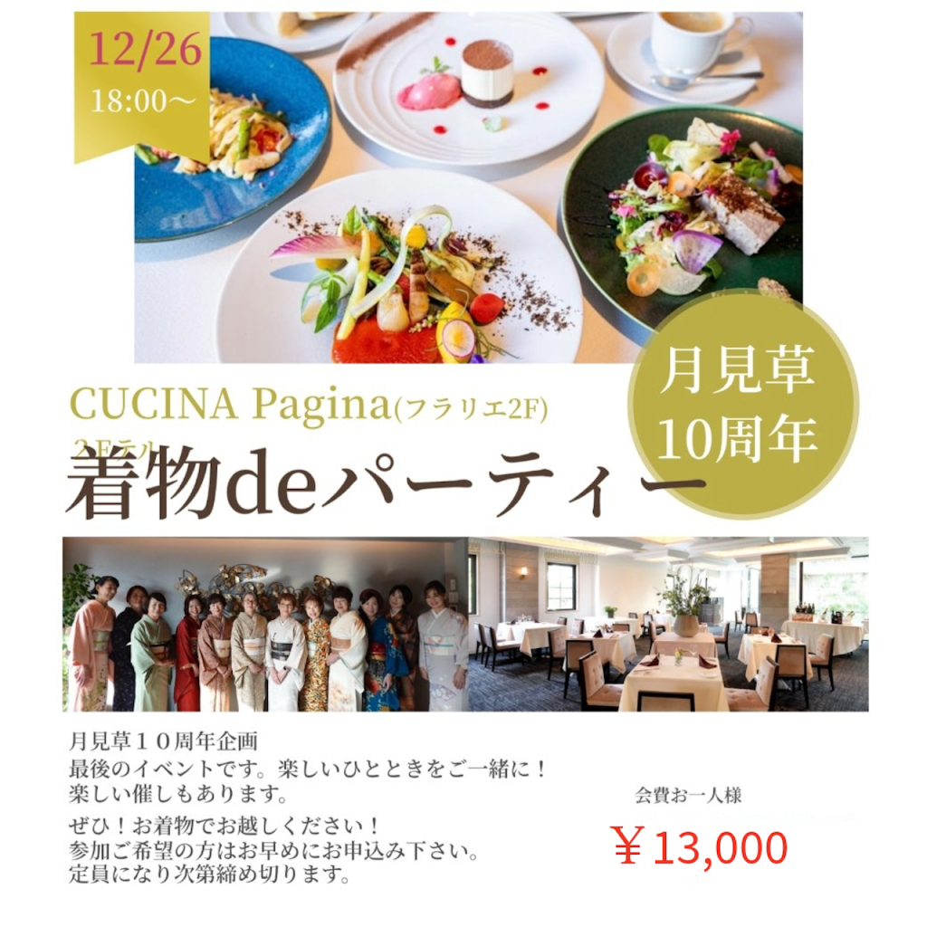 そして、26日はお楽しみ、今年最後のイベント月見草10周年記念「着物deパーティー」です。